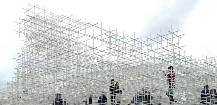 When launching the 2013 Serpentine Pavilion – designed by Japanese architect Sou Fujimoto – programme director Hans Ulrich Obrist described the work as “an oscillation between the finished and unfinished, the organic and the geometric’ and a “utopic cloud city”; meanwhile, in the artist’s own description, a “new form of environment will be created, where the natural and the man-made merge; not solely architectural nor solely natural, but a unique meeting of the two”.