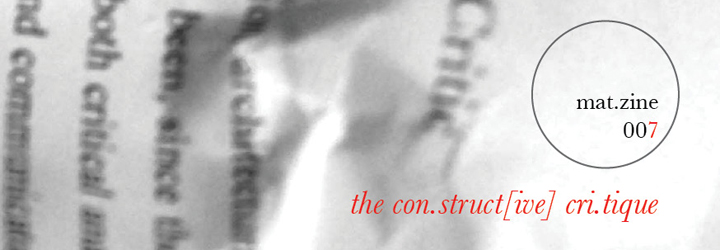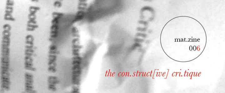 following the success of matzine #05 i hearby declare doors open for issue #06 submissions. the theme for matzine 06 is ‘the construct[ive] critique’.