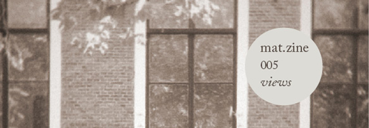 Attention!Roll up roll up! mat.zine number five is here. Many thanks to those who contributed – it seems that there is plenty of interest to keep this pamphleteering alive and healthy. Apologies too, for a considerable delay on this editor’s part – nothing to blame but the peripatetic ways of late.